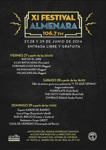 La radio libre y comunitaria de La Ventilla celebra su undécimo festival con una completa programación, donde un año más no faltarán las actividades infantiles, la magia, el teatro y, por supuesto, la música. Será del 27 al 29 de junio, en el parque Rodríguez Sahagún, y con un solo objetivo: “Que los vecinos puedan disfrutar y encontrarse al aire libre en un ambiente familiar y distendido, y aprovechar este espacio para transformarlo y darle un uso diferente”, explican desde Radio Almenara.