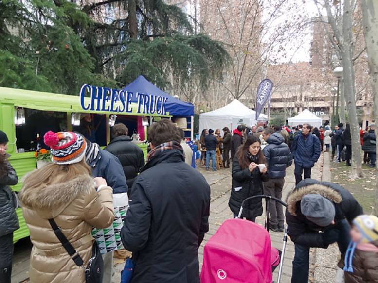 En MadrEat pueden encontrarse ejemplos de la cocina española, alemana, india, china, japonesa, norteamericana, latinoamericana… o una fusión de varias de ellas, que se despachan en caravanas con largas colas para conseguir un perrito caliente, una hamburguesa, una tabla de queso o unas croquetas (hay muchas más opciones) de categoría gourmet.