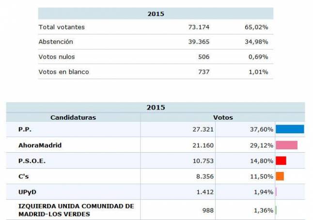 Los resultados obtenidos en Tetuán, en las elecciones municipales y autonómicas celebradas el pasado domingo 24 de mayo, revelan que un distrito en el que el Partido Popular siempre ha ganado con mayoría aplastante, en esta ocasión ha vuelto a ser el partido más votado, pero con 8.460 votos menos que en las elecciones de 2011.