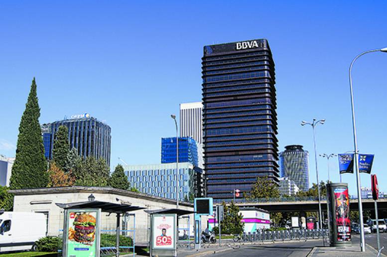Las obras comienzan en 1975 y terminan en 1981. Tras varias fusiones de la entidad bancaria, BBVA vende en 2007 el inmueble a la sociedad inmobiliaria Gmp –propietaria también de Castellana 77, en el interior de Azca–, que plantea una rehabilitación integral del edificio. Del proyecto, a punto de finalizar, se encarga Antonio Ruiz Barbarín basándose en la documentación original, con un escrupuloso respeto a la idea del arquitecto navarro y afán por potenciar su sostenibilidad.