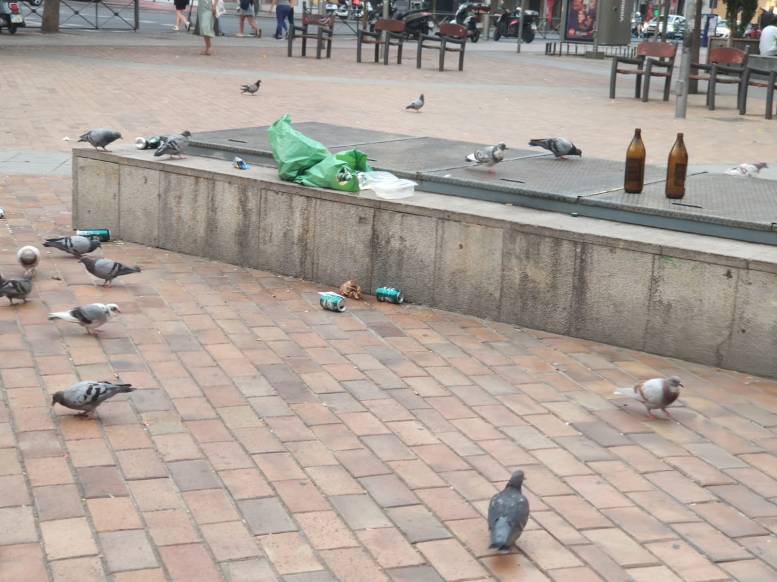 Otro de los mayores quebraderos de cabeza vecinal es la discoteca situada en la misma calle, “que hasta ahora tenía terraza y que cierra a las cinco de la madrugada, con el consiguiente jaleo nocturno y peleas todos los días”, explica Francisco, que cita también la “zona de guerra” en la que, debido a los constantes balonazos, se convierte el improvisado campo de fútbol formado por una veintena de niños, “por no hablar de la gente constantemente dando de comer a las palomas, que genera muchas incomodidades a quienes vivimos aquí”.