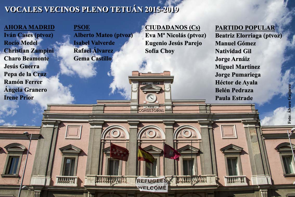 También cambia el mapa político del Pleno, que distribuye sus 25 vocalías vecinales del siguiente modo: nueve para Ahora Madrid y Partido Popular, cuatro para el PSOE y tres para Ciudadanos (C’s). Una configuración que por primera vez en muchos años carece de mayorías absolutas, lo que augura una mayor necesidad de lograr consensos.