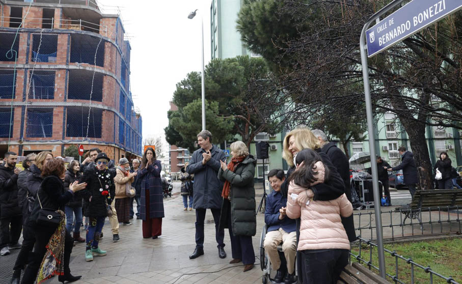 Bernardo Bonezzi estaba dispuesto a ir hasta Groenlandia en busca de quién sabe quién, pero los madrileños ya pueden acercarse a uno de los bordes del distrito para encontrar a Bonezzi. La delegada de Cultura, Turismo y Deporte, Marta Rivera de la Cruz, y el concejal-presidente de Moncloa-Aravaca, Borja Fanjul, han inaugurado un vial que lleva el nombre de Bernardo Bonezzi, en reconocimiento a su trayectoria artística y como homenaje a uno de los músicos más innovadores de la movida madrileña. La calle que recibe el nombre de este intérprete y compositor es de nueva creación y une la de Ofelia Nieto, en el límite de Tetuán, con la avenida del Santo Ángel de la Guarda, ya en Moncloa-Aravaca. La denominación fue aprobada por la Junta de Gobierno el pasado 16 de octubre y al acto inaugural asistieron familiares y amigos del músico, fallecido en 2012.