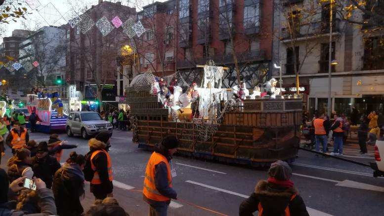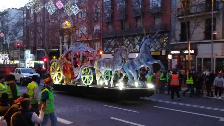 Este año, la cabalgata estará compuesta por seis carrozas: las tres de Melchor, Gaspar y Baltasar; una de la Junta Municipal de Distrito; otra en forma de tren; y una última de fantasía con ángeles. Durante todo el desfile se repartirán 500 kilos de gominolas blandas de frutas variadas y sin gluten.