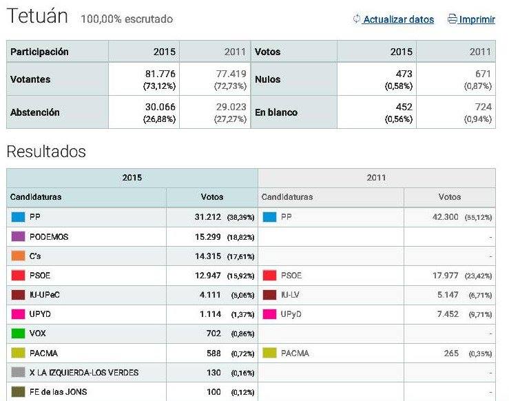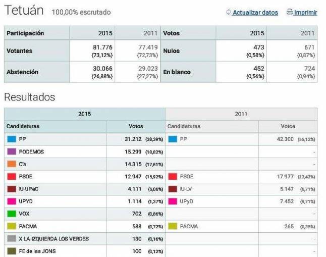 Por último, la participación de Tetuán en las elecciones generales fue del 73,12 por ciento, casi calcada al 73,2 que se cosechó en toda España, y ocho puntos por encima respecto al 24 de mayo.