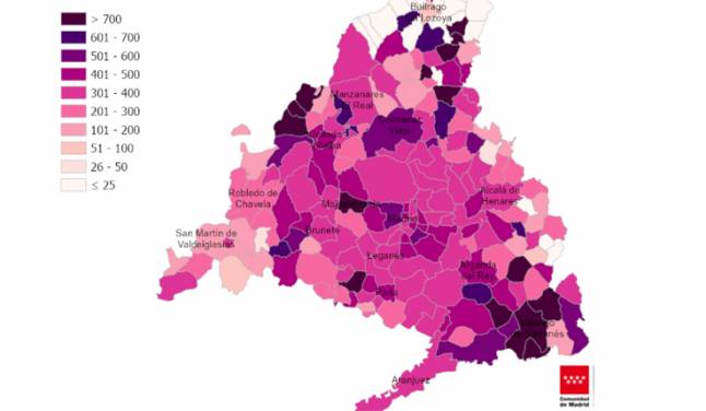Así, Infanta Mercedes ha experimentado una subida de positivos del 23% en la última semana, hasta los 513,53. También han empeorado, aunque en menor medida, las cifras de General Moscardó, con 445,37 y Bustarviejo, con 389,96.