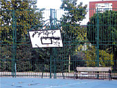 La mayoría de las canastas –tablero y aro incluidos– y las porterías tienen pintadas y están rotas (o destrozadas, en algunos casos), cuando no han desaparecido de su lugar habitual; en el suelo, descolorido y con desconchones, se acumula la basura: bolsas de plástico, restos de vidrio, envases y botellas –prueba ineludible del botellón del fin de semana–, y en cuanto llueve se forman balsas de agua. Ésa es la imagen que quien desee practicar algo de deporte allí se encontrará habitualmente.