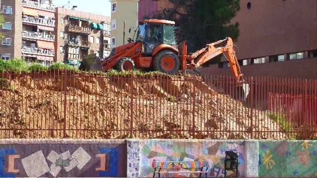 El 9 de abril no fue un buen día para los alumnos del colegio público Ignacio Zuloaga. Tras ayudar en la construcción de un huerto urbano en un trozo del solar lindante con el patio del centro, en la glorieta de Rocío Dúrcal, aquella mañana veían en directo cómo una excavadora destruía el trabajo de los dos últimos meses. El motivo esgrimido por la Junta del distrito aludía a que se había ocupado ilegalmente un espacio municipal destinado a uso residencial, argumento con el que coincidía el delegado de Medio Ambiente y Movilidad, Diego Sanjuanbenito, tras una pregunta de IU en la Comisión del ramo. Por su parte, la AMPA del centro, promotores junto a la propia dirección del montaje del huerto, explicaba su iniciativa por la inacción de una Junta que llevaba cerca de dos años sin atender sus peticiones sobre un solar abandonado y sin vallar desde hacía años.