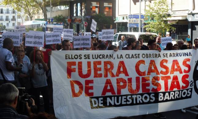 La marcha estaba convocada por la plataforma contra los locales de apuestas de Madrid, que agrupa a 168 colectivos de la región, y a ella se había sumado la Federación Regional de Asociaciones de Vecinos de Madrid (Fravm).