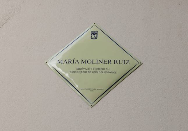 El Ayuntamiento de Madrid ha colocado una placa en memoria de María Moliner en el número 1 de la calle de Don Quijote, en la vivienda donde la bibliotecaria y filóloga aragonesa escribió durante más de 15 años su Diccionario de uso del español.