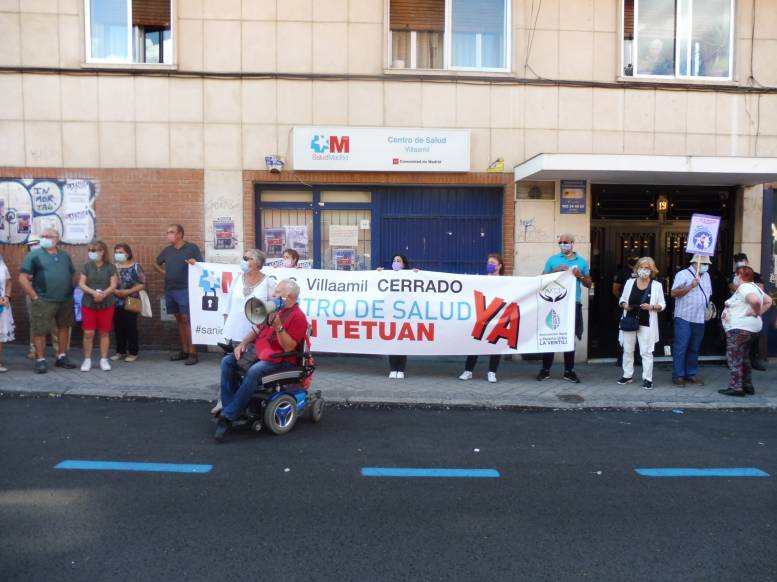 Ya lo advirtieron las asociaciones de vecinos de Cuatro Caminos-Tetuán y Huerto Urbano La Ventilla, en la concentración del pasado 14 de julio en la Plaza del Canal de Isabel II: “Vamos a organizar una gran manifestación por todo Bravo Murillo”. Y han cumplido su promesa. El sábado 18 de septiembre, a las 12 del mediodía, la convocaron para volver a protestar por el cierre del Centro de Salud Villaamil a mediados de junio, lo que ha provocado que sus trabajadores y sus 24.000 usuarios se hayan tenido que trasladar al Centro de Salud Doctor Castroviejo, en el distrito de Fuencarral-El Pardo.