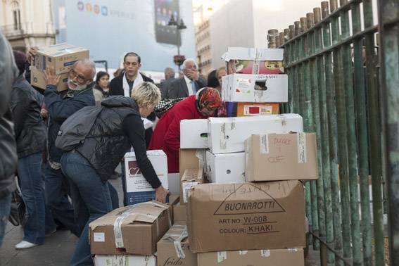 “Se recogió muchísimo y una parte se repartió allí mismo y otra la donaron a distintos bancos de alimentos, entre ellos el de Tetuán”, explica Hugo Atman, uno de los miembros de esta plataforma impulsada desde hace meses por el 15M del distrito, junto con otros colectivos. El reparto fue promovido por Jorge Arsuaga, el joven indignado que desde hace un mes vive acampado en el centro de la capital, tras declararse en huelga de hambre “para exigir la dimisión del gobierno”.