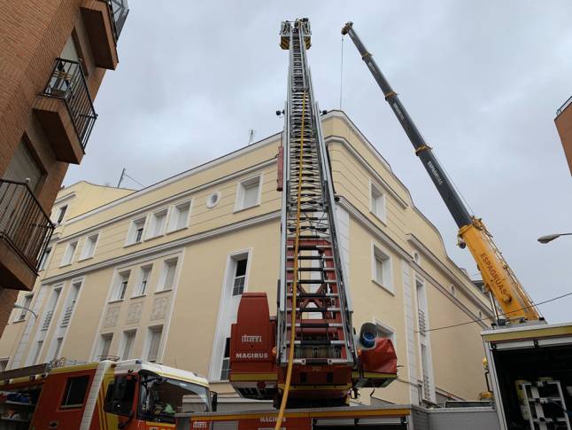 Las obras en la cubierta del local, dañada tras la nevada, provocan un incendio sin heridos en el edificio anexo de la calle Naranjo