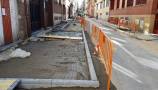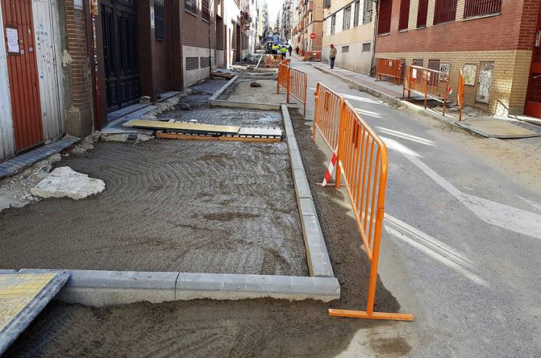 Otro ejemplo similar lo encontramos en la calle de Berruguete, donde se están renovando las aceras en su totalidad, en una vía muy estrecha, que ahora lo es más con tanta valla que impide que los peatones caminen por la acera y tengan que hacerlo por la calzada, esperando en muchas ocasiones a que pasen los vehículos para que ellos puedan seguir su camino.
