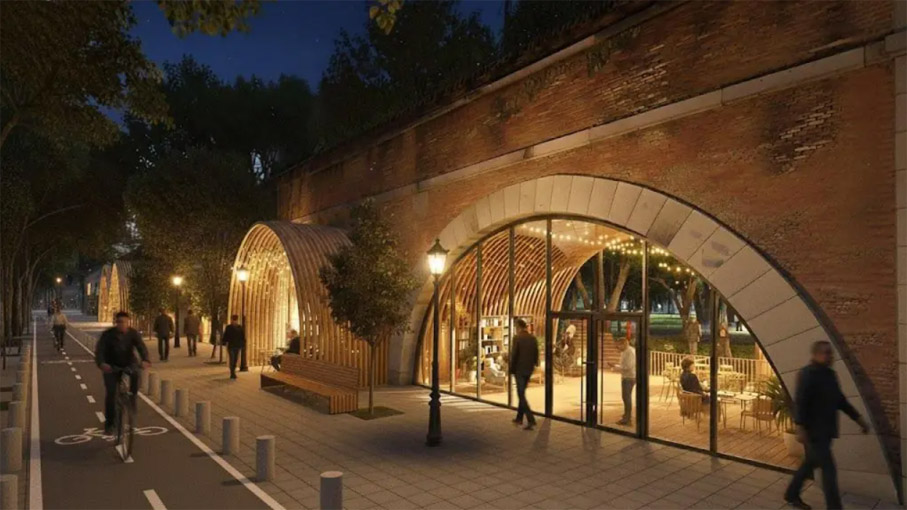 La propuesta de estos jóvenes de 24 años pasa por crear un corredor ecológico en el ámbito, eliminando vías sin uso e instalando bajo los arcos galerías o espacios comerciales y culturales, y creando pasarelas con estructuras de madera que den sombra y atraigan a los vecinos. La idea “no plantea una intervención excesivamente compleja desde el punto de vista constructivo, pero sí rica en matices”, ha asegurado Maximiliam, que argumenta que “un proyecto relativamente sencillo puede aportar mucho valor”.