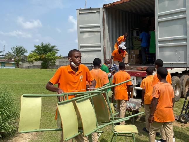 Las sillas y mesas del Colegio Felipe II viajan 4.500 kilómetros por un fin solidario