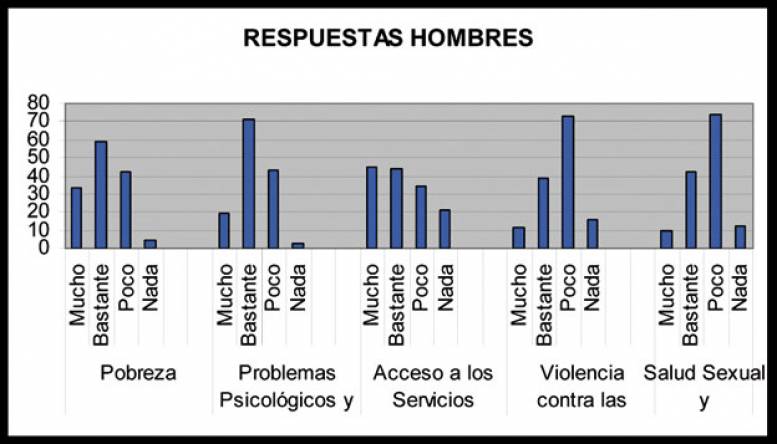 Los profesionales, en cambio, tienen otra impresión de la realidad del distrito, y en su clasificación colocan primero la violencia de género y después la salud sexual y reproductiva. Durante la realización de las encuestas detectaron, incluso, que algunas personas no sabían a qué se referían con el término “violencia de género”, por lo que debieron cambiarlo.