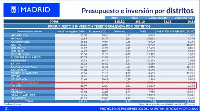 Tetuán tendrá un presupuesto de 32,2 millones para 2020, un 11% más