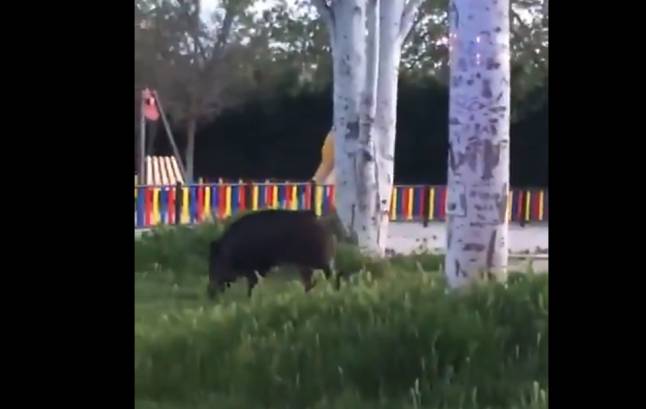 Vecinos graban a un jabalí suelto en el Parque Rodríguez Sahagún