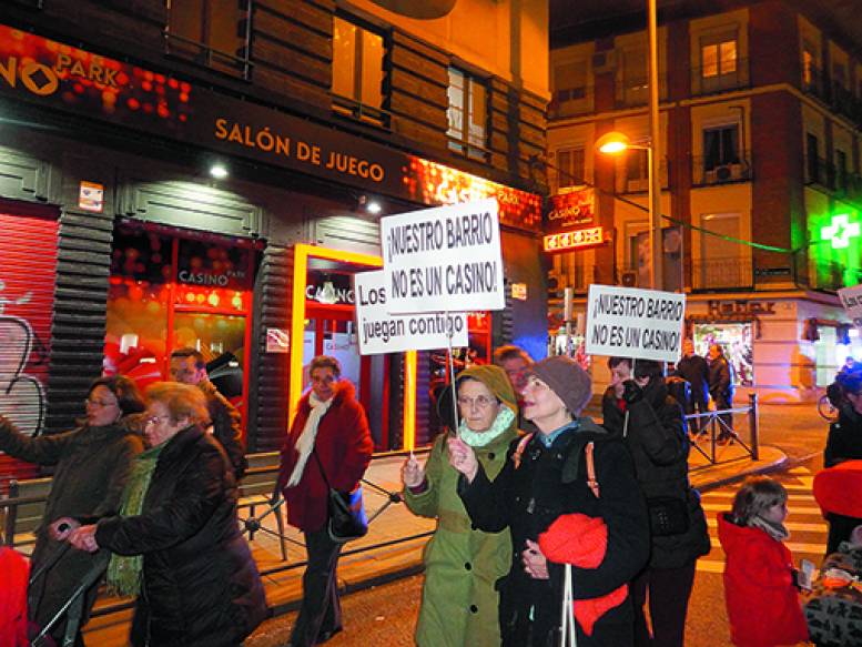 Antonio Ortiz, presidente de la Asociación Vecinal Cuatro Caminos-Tetuán, lo explica: “A nosotros nos llegan ya casos de familias preocupadas porque sus hijos juegan, y a los centros de atención a drogodependientes quienes más van ahora es gente por ludopatía. Nos negamos a que se repita lo que ocurrió hace décadas con las drogas, y por eso salimos a la calle. Esto puede hipotecar el futuro de nuestros barrios”, y añade: “Las casas de juego no son una actividad comercial más, no son una mercería, llevan a la ruina a la gente”.
