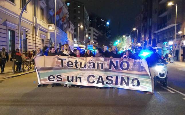 “Tetuán no es un casino”, “apuesta por tu barrio”, “stop casas de apuestas” o “ellos ganan, tú pierdes”, fueron algunas de las consignas que pudieron escucharse y leerse durante la manifestación, convocada por las asociaciones vecinales de Cuatro Caminos y Almenara-Ventilla, los Foros Locales de Tetuán, entidades sociales y diversos partidos y agrupaciones políticas de izquierdas del distrito, entre ellos Ahora Madrid, PSOE, Podemos, Ganemos o Izquierda Unida, entre otros. Además, la marcha contó con el apoyo de la Federación Regional de Asociaciones Vecinales de Madrid (FRAVM), cuyo presidente, Enrique Villalobos, leyó un manifiesto al término del recorrido.