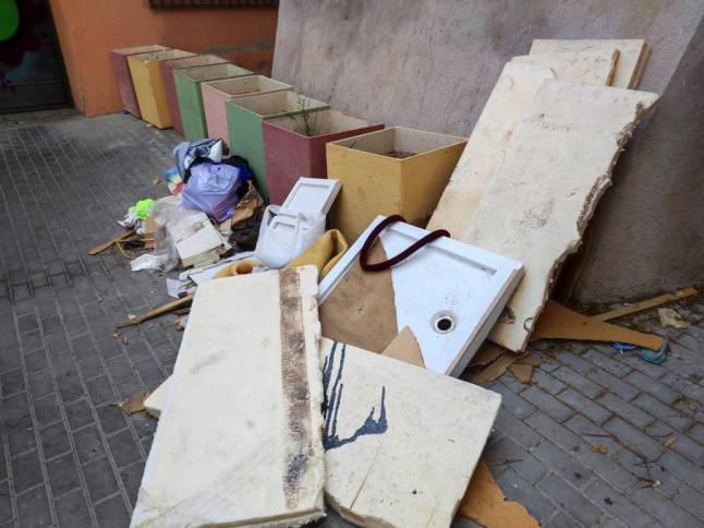 Hay personas que, sin sentido de la convivencia y en muchos casos no residentes en esta calle, tiran aquí esos objetos. Frente a ello, el Ayuntamiento debería tomar medidas educativas, de vigilancia, de identificación y de sanción. Pero la más urgente y sencilla es que los servicios municipales cumplan su función de recogida y limpieza, por la dignidad de la calle, porque suciedad llama a suciedad, por higiene, por seguridad. Esa es la tarea institucional que debe atender la Junta de Distrito.