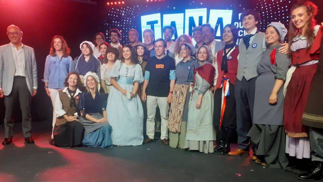 Además, el director de la escuela le hizo entrega de una camiseta negra con la palabra Jana impresa por la parte delantera, que el alcalde no dudó en ponerse al instante para fotografiarse con ella, junto a la concejala del distrito, los directivos de Jana y todos los alumnos, que estrenaron este musical esa misma tarde, con representaciones a las 17:00 y a las 20:00 horas.