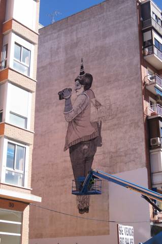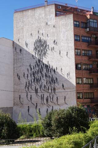 Cabe recordar que Suso 33 se crió en Tetuán, y en sus calles fue donde comenzó sus conocidas “ausencias”, esas sombras que pueden verse todavía en algunos puntos de La Ventilla y Valdeacederas y que ha querido reflejar también en el mural de Pamplona.