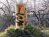 Mirar la comba de la pierna que sale de un tronco de madera y pasar suavemente la mano para sentir la sensualidad de su forma; introducir la mano por el hueco de uno de los maravillosos “Besos” pulidos y acariciar las curvas de la madera… Hay que hablar poco y percibir mucho.