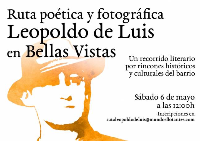 Para esta “geografía literaria y emocional” del barrio se ha creado un recorrido con puntos claves de la vida y obra de De Luis, entre ellos la plaza a la que presta su nombre, impulsada por los propios vecinos, que también lucharon para que existiera el certamen literario Leopoldo de Luis. “Ahora vuelven a ser los vecinos de Bellas Vistas los que con esta ruta apuestan por poner en pie sus palabras”, señalan.