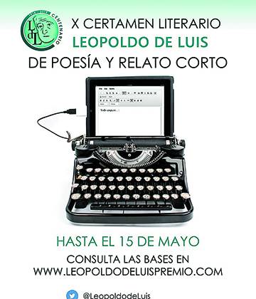 El Certamen Literario “Leopoldo de Luis” de poesía y relato ya ha abierto el plazo de recepción de originales, que finaliza el próximo 15 de mayo. Organizado por la Junta Municipal de Tetuán, este certamen literario cumple este año su décima edición, y cuenta con la doble finalidad de “ayudar en su carrera a poetas y escritores, especialmente a los noveles” y enriquecer la programación cultural del distrito. También sirve para rendir homenaje al poeta, que durante siete décadas fue vecino de este barrio, que le dedicó además una plaza en el barrio de Bellas Vistas.