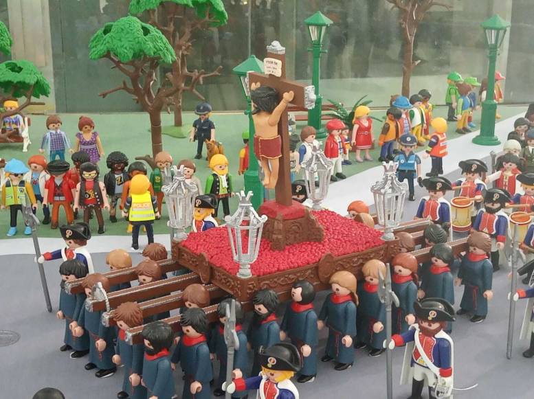 Para acabar, el montaje destina dos de sus espacios preferentes a referentes religiosos de la capital, como: San Isidro Labrador, con dos dioramas de momentos muy conocidos de la vida del santo, y la procesión genuinamente madrileña del ‘Cristo de los Alabarderos’, donde más de 200 figuras de Playmobil reproducen el paso que sale del Palacio de Oriente y discurre escoltado por la Real Guardia de Alabarderos.
