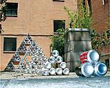 Cada profesor adaptó el tema central a su materia y se reunía con los grupos en horas lectivas de clase, ya que la actividad estaba dentro del contenido del curso. El Departamento de Historia propuso la exposición “Recicl-arte”, para la que los chavales tenían que crear objetos de su invención a partir de otros reciclados; en Lengua se han dedicado a la lectura de libros y textos relacionados con el medio ambiente y el consumo, como La hamburguesa de Mamut, que habla sobre la alimentación; en un taller de jabón han podido participar los alumnos de Biología, y en uno de encuadernación con papel reciclado los de Plástica; el Depar-tamento de Francés se fue a la “Caza del tesoro” con una actividad que retaba a descifrar un mensaje a partir de una serie de datos, como unos gráficos que mostraban la gran diferencia que todavía existe entre el consumo de papel de calidad y el normal y el reciclado. Una de las ideas más sorprendentes, por su tamaño y luminosidad, ha sido la realizada por la clase de recuperación de Matemáticas, que ha construido un Triángulo de Sierpinski, una figura fractal que han elaborado con 1.300 latas de refrescos.