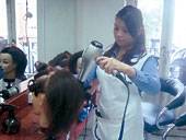 “De momento estamos viendo el lavado de cabeza, el masaje capilar, la aplicación del tinte, el secado de mano y los rulos… y también la iniciación al corte de señora y de caballero”, explica la ganadora, que reconoce estar muy contenta con el curso, del que le agrada especialmente que desde el primer día se practique con clientes lo aprendido en el aula.