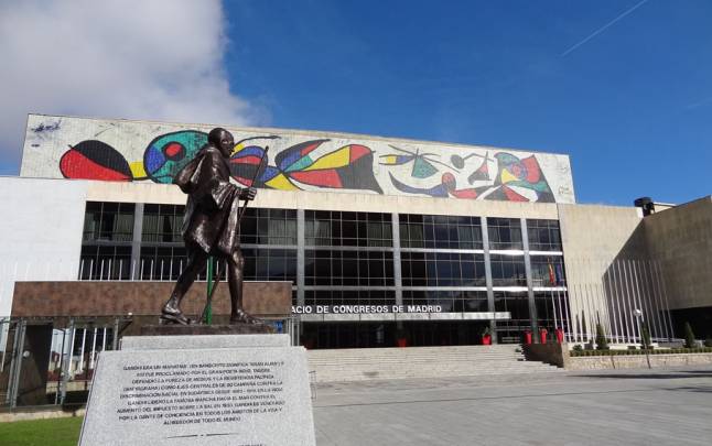 La escultura de Gandhi en la explanada del Palacio de Congresos y Exposiciones de Madrid, más conocida como Plaza de Joan Miró, se instaló en 2013 como homenaje a Mohandas Karamchad Gandhi (Porbandar, 2 de octubre de 1869 - Nueva Delhi, 30 de enero de 1948), el dirigente más destacado del movimiento de independencia de la India, además de pacifista, político, pensador y abogado hinduista indio. Recibió de Rabindranath Tagore el nombre honorífico de Mahatma.