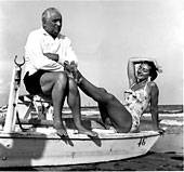 Por los pasillos de Mitografías caben, entre otros, la infinidad de amistades célebres de Charlot –“la persona más fotogénica del mundo”, según el comisario de la muestra, José María Díaz-Maroto–; una Marie Curie retratada con idéntico gesto a los 20 y a los 60 años; Einstein de visita por Zaragoza o plantando un árbol en Palestina; Hemingway charlando con las dos cumbres del toreo, Dominguín y Antonio Ordoñez; un divertido y egocéntrico Cela duchándose o haciendo muecas; Salvador Dalí con Harpo Marx, Andy Warhol o vestido con traje cordobés; Gandhi afeitándose sin espejo, Picasso en ropa interior, con su cabra Esmeralda o bailando con Lucía Bosé... Y es que familia y animales domésticos tienen un hueco importante en esta exposición que busca adentrarse en el “mito íntimo”, a través de instantáneas fundamentalmente anónimas, y también de otras pertenecientes a reputados artistas como Lee Miller, Zvi Gezari, Edward Steichen o Edward Quinn.