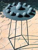 La exposición que se presenta a lo largo de estos días recoge más de una decena de esculturas, trabajadas en su mayoría en hierro y piedra volcánica, aunque también utiliza otros materiales como la madera, el cáñamo o el cristal.