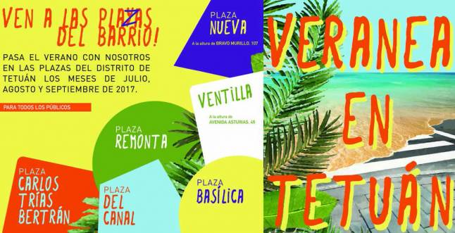 Cine, danza, espectáculos de magia y malabares son algunas de las propuestas que traerá “Veranea Tetuán” a seis plazas del distrito los meses de julio, agosto y septiembre. Para los que estos meses se queden en la ciudad, la Junta de Distrito ha preparado un programa con más de una veintena de propuestas culturales y de ocio para toda la familia, que se repartirán por las plazas de arlos Trías Beltrán, La Remonta, del Canal, Nueva –antiguas cocheras de la EMT en Cuatro Caminos–, Ventilla –a la altura del 49 de la Avenida de Asturias– y Basílica
