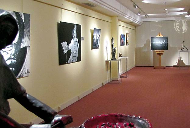 En cuanto a las obras pictóricas, se exhiben “La ermita y el progreso”, de Rosa Garriga; “Marvin Gaye”, de Eduardo Matute “Dudu”; “Libros y candil”, de Rafael Arias, y “Mujer en Fiesta”, de Simeón Peña “Malatesta”.