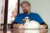 Llega con el Señor Wilson –su conejo– y no se va hasta que no nos hace un juego de cartas que nos deja mudos. Este mago “de rebote” lleva ocho años viviendo en Tetuán, de donde son sus abuelos, y cuatro ganándose la vida sorprendiendo a quienes asisten a sus espectáculos. Hace unos días pasó por nuestra redacción y nos contó su “truco”, sin desvelarnos que mantuvo un –presunto– romance con Megan Fox. Luego él mismo nos lo cuenta, negándolo, desde Twitter. Pero no cuela. Es la única vez que le descubrimos la trampa.