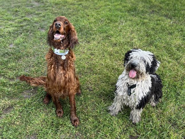 Hola Tetuaneros!!! Somos Jara y Curtís, una setter irlandesa de casi 3 años y un perro de agua español de 1 año y medio. Jara es cariñosa, buena, leal y se tiene camelado al barrio entero en busca de chuches. Curtís está obsesionado con las pelotas, los palos y el agua es un buen rollero, obediente y disfrutón.
