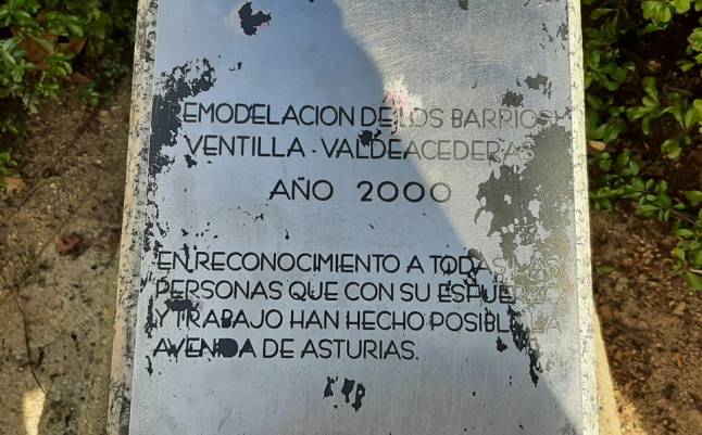 Más allá de la ridiculez que supone querer dejar una placa deteriorada en un espacio que se va a arreglar, el portavoz de Vox haría bien en informarse de qué ocurrió en La Ventilla y Valdeacederas desde finales de los años 70 hasta principios del 2000, sobre todo si quiere evitar empanadas discursivas como la de más arriba. Para empezar, habría bastado con leer la inscripción de la placa: “En reconocimiento a todas las personas que con su esfuerzo y trabajo han hecho posible la avenida de Asturias”.