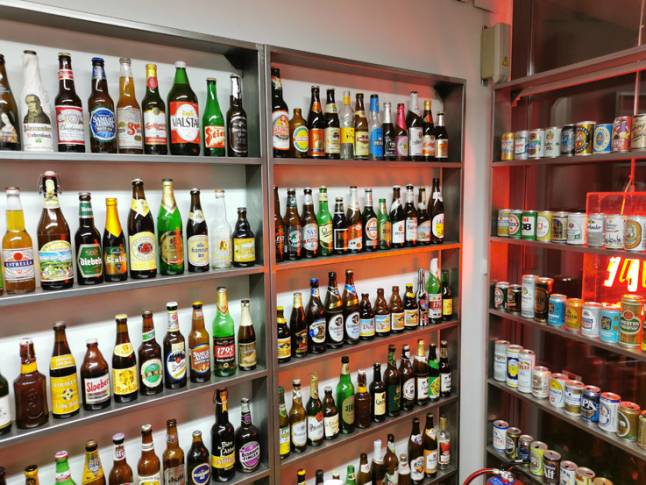 Cuando llegamos estuve un rato viendo desde fuera el gran expositor que tienen, con multitud de latas de cervezas. Y es que Sabeer es, tal y como dicen en su web, un espacio donde compartir el conocimiento y la pasión por la cerveza, y se nota en cada uno de los rincones del local.