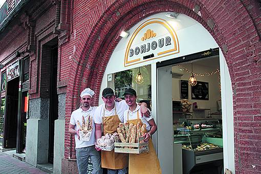 Lo primero que hace cualquier francés, y muchos españoles, nada más levantarse, es ir a por el pan. En Francia se toman muy en serio la elaboración de este producto de primera necesidad. La legislación allí es mucho más exigente que la española, respecto a la denominación de este tipo de negocio. Por ejemplo, si no se elaboran los productos en el establecimiento, no se puede llamar panadería o pastelería. Requisito que no es indispensable en España. Por eso, la panadería Bonjour, que está en Francos Rodríguez, 42, tiene algo diferente: lo producen todo ellos mismos. Los dos socios y amigos, Laurent (panadero) y Romain (pastelero), relatan su quehacer diario en Bonjour: “Queríamos importar la tradición francesa, que considera a la panadería como una institución del barrio. La gente, todavía, no compra el pan por internet (bromean). La harina que usamos la traemos desde un pueblecito pegado al nuestro, Yvre L’Eveque, que tiene un molino de 1908”.