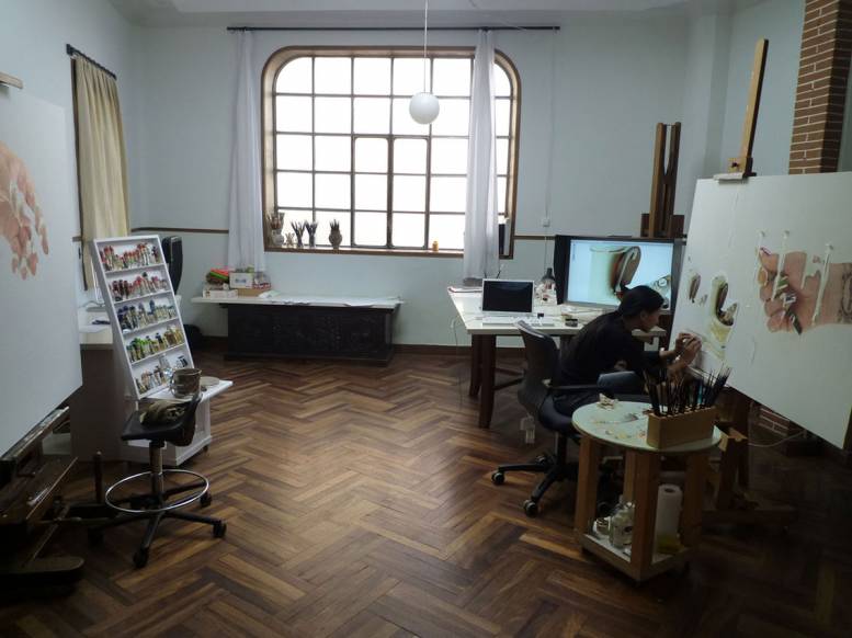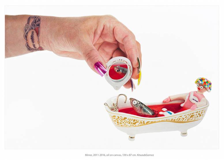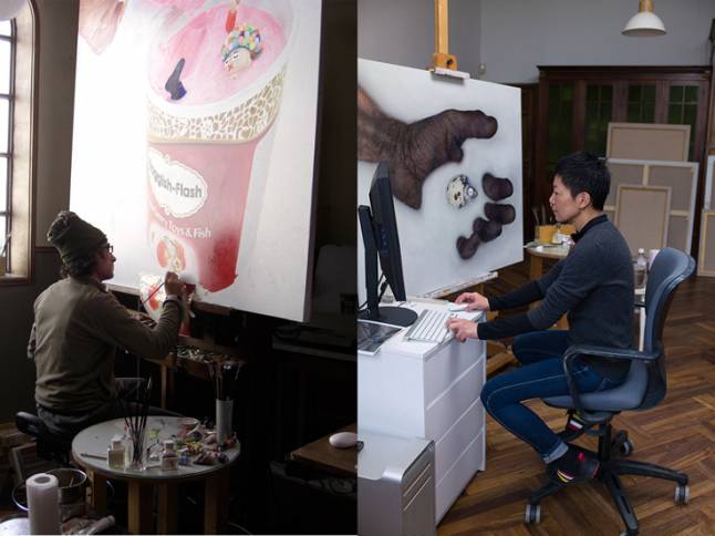 Un resultado de impacto visual muy original a partir de un método de trabajo “rutinario”, que arranca con una primera idea, génesis de la obra, a partir de la que elaboran pequeñas instalaciones con objetos, o bien con tatuajes efímeros que ellos mismos diseñan digitalmente; de ahí se pasa a formato fotográfico, que será a su vez modificado mediante Photoshop o en un monitor táctil, hasta llegar a la última transformación, ya en el propio lienzo. “Cada pintura tiene tanto nivel de detalle que una obra precisa de varios meses, unas seis u ocho horas diarias pintando”, explica Kitazu.