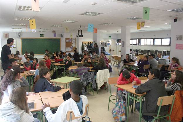 Tampoco hay libros de texto –“porque la información hoy ya no está ahí”, dice el director de Innovación, Gregorio Casado–, sino que los cuadernos de trabajo han sido previamente preparados por los docentes y adaptados a la actividad, que finaliza cada mes y medio siempre con un proyecto que se pueda visualizar, ya sea una presentación en público del trabajo, un mural o un powerpoint.