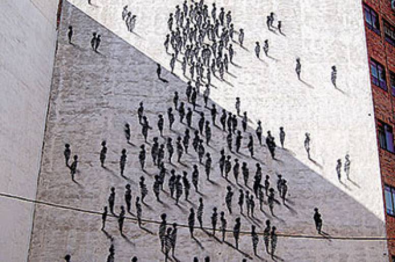 De vuelta hacia Bravo Murillo nos topamos con la plaza del poeta Leopoldo de Luis, entre las calles de Navarra, Castilla y Goiri, una demanda vecinal que rinde homenaje al que fuera Premio Nacional de las Letras y vecino del distrito durante décadas. Allí, en uno de sus muros, deambulan las “ausencias” del artista urbano Suso33, obra que forma parte del proyecto “Paisaje Tetuán”, impulsado por el Ayuntamiento en 2013.