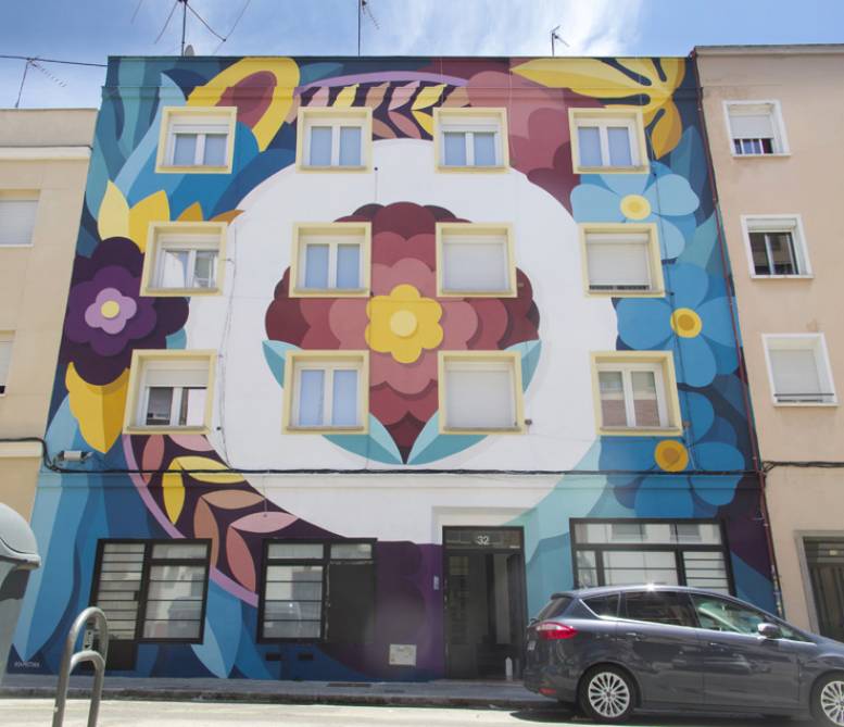 Boa Mistura recupera la primavera 'robada' por el Covid en una fachada del barrio