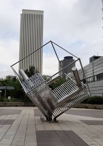 Tetuán 30 días ha trazado un recorrido para descubrir algunos de estos “tesoros” escultóricos inadvertidos, cuyo punto de partida no puede ser otro que Azca, cuya manzana acumula la mayor parte de las obras. En su interior se encuentra, desde 1978, el cubo de acero inoxidable apoyado en uno de sus vértices, titulado ‘Cilindros en el Espacio’. Esta obra de Enrique Salamanca –el segundo artista más expuesto en la capital y autor del homenaje a Tierno Galván en el Parque de La Vaguada o de la "Estrella de la Libertad" que corona el Nudo Norte– fue recolocada hace unos años, y debido al desgaste se cambiaron sus baldosas de granito negro por las actuales, perdiendo así su “sentido especular inicial”.