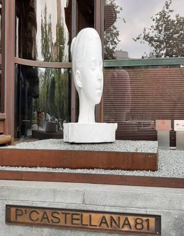 Muy cerca, flanqueando la entrada principal de la torre Castellana, 81, se halla el busto de ‘Isabella’, obra del artista plástico Jaume Plensa para la propiedad del edificio, que en 2018 instaló este joven rostro femenino, de casi dos metros de altura, unos meses antes de que el Ayuntamiento de Madrid colocara su más conocida y monumental ‘Julia’, en la Plaza de Colón.